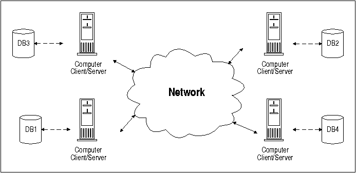 In a fully-distributed environment, any machine can act as a server, or as a client, or both. This is of immense importance to the database user, since it means that one can access data as if it were on the user's host machine, even if the data is inf fact physically stored on remote machines, the user's own machine, or any combination of these. The fully-distributed environment has the additional benefit of being configurable so as to optimize performance in a multi-CPU environment.